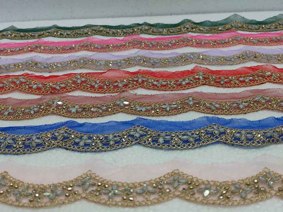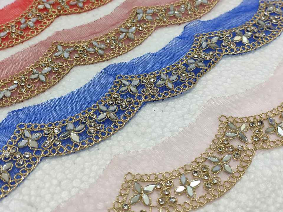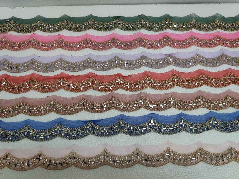 Gold Scalloped Edge Embroidered Mirror Work Lace Trim Luxury Fancy Cutwork Border for Saree Bridal Dress DIY Sewing Material