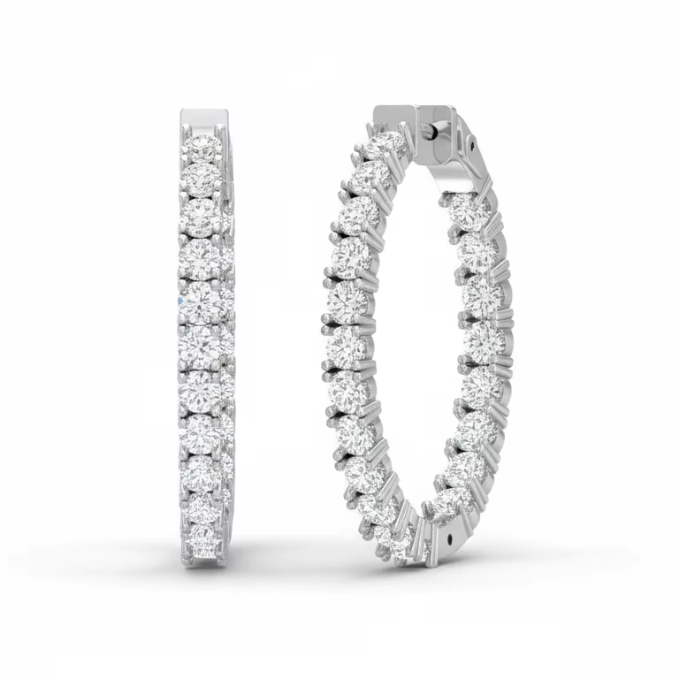 Gold Set Inside-Outside Diamond Hoop Earring For Women