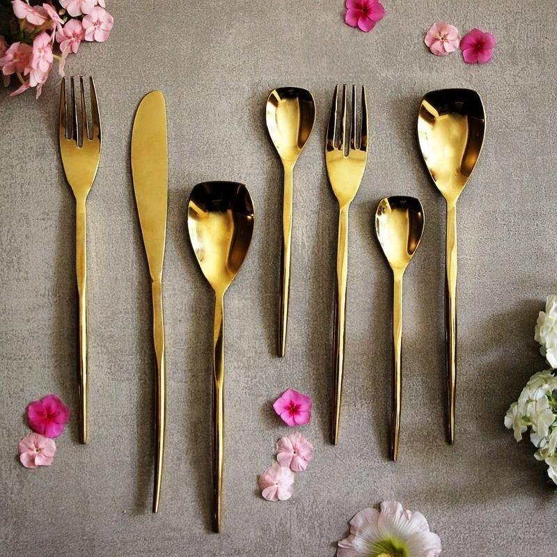 Gold Silverware Set Soup & Rice Spoon Gold Stainless Steel Flatware Set Stylish Cutlery for Parties Hotels and Fine Dining