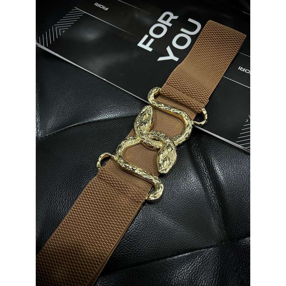 Gold Snake Buckle Elastic Women's Belt Y2K Style Metal Belt Alloy Hardware Fashion Accessory