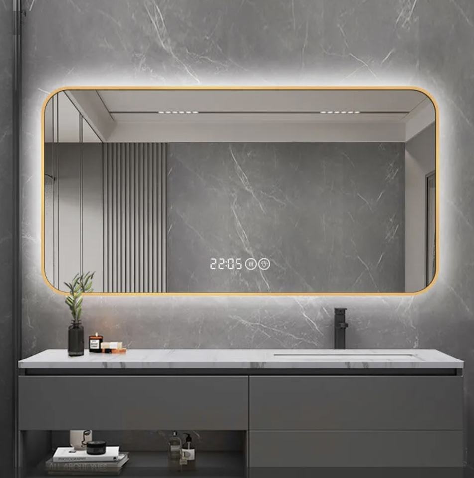 BONG SEN Gold Square Bathroom Black White Decorative Vintage Touch Led Mirror Drying Function Customizable Size Glass Aluminum