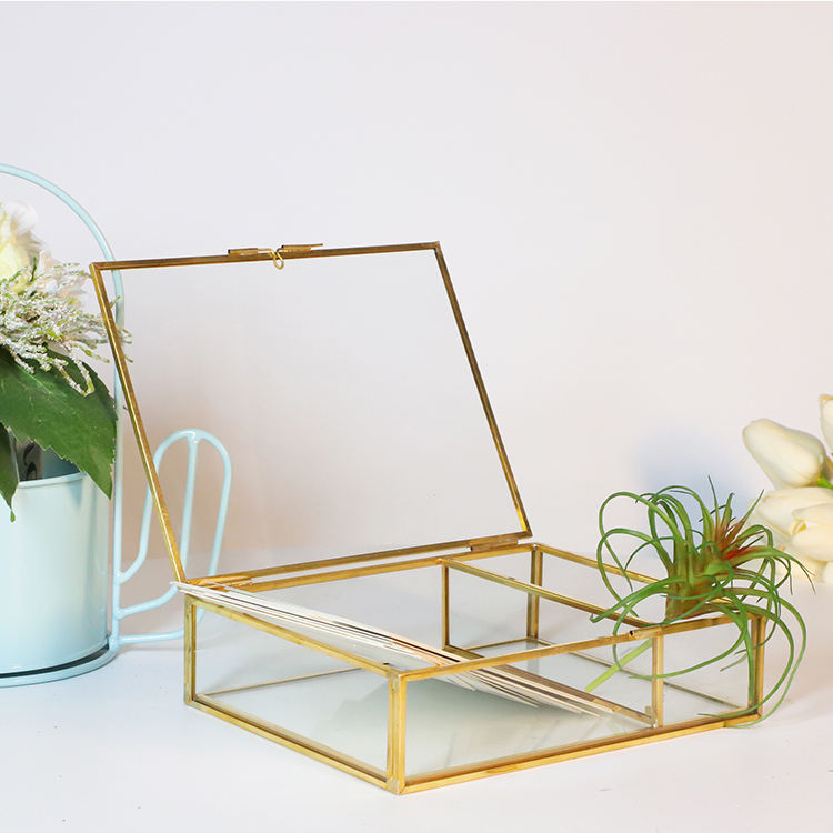Gold Square Glass Terrarium Jewelry Box With Lid and Metal Lock Glass Boxes for Jewelry Wholesale Box Planting Pot Planter