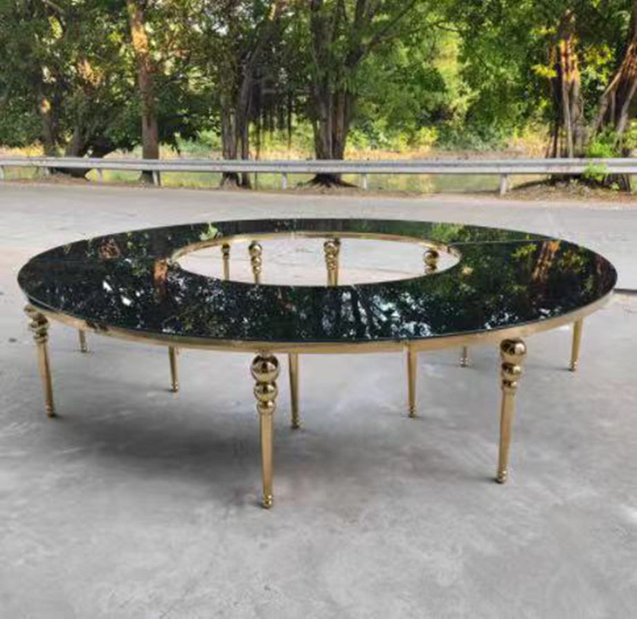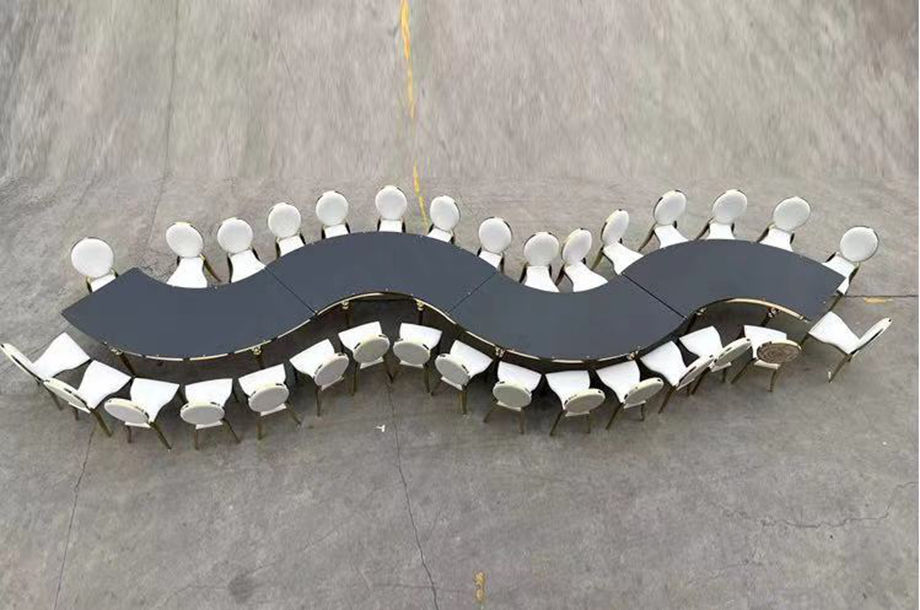 Gold Stainless Steel Modern Outdoor Moon Table MDF Top Hotel Event Serpentine Luxury Wedding Dining Table