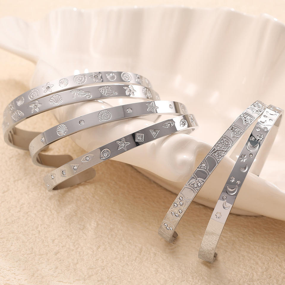 Gold Star Moon Zircon Inlay Open Cuff Bracelet Unisex Jewelry Fashion Accessory