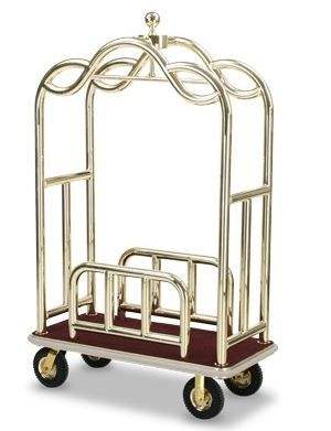 Gold Steel Restaurant Lobby Baggage Trolley Hotel Luggage Trolley Bellman Four Wheels Bellboy Cart Service Trolley Luggage Carts
