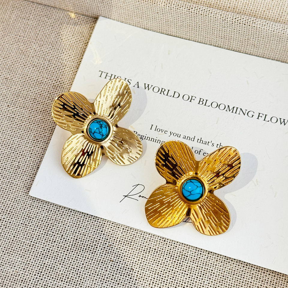 Gold Stud Earrings Women Sculptural Bow Textured Heart Leaf Flower Stainless Steel 100% Custom Made Trendy 14K Gold Plated Party