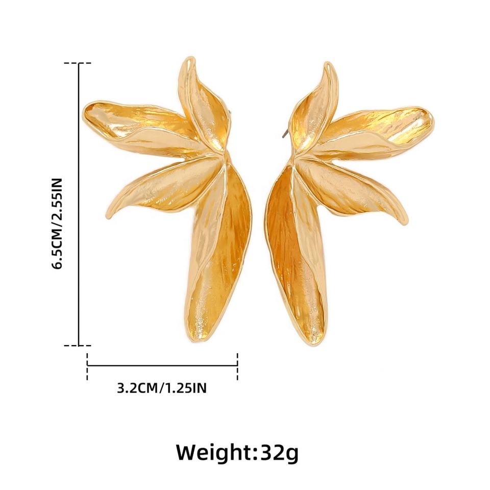 Gold Stud Earrings Women Sculptural Bow Textured Heart Leaf Stainless Steel Exaggerated Geometric Trendy Custom Made Party 14K