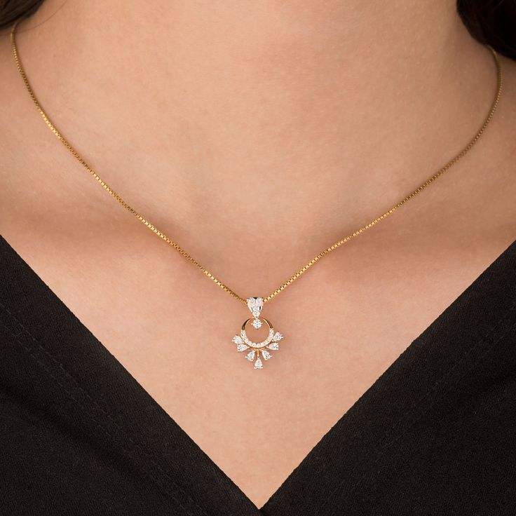 Gold Sunburst Diamond Pendant Necklace for Women – Round & Marquise Cut Diamond Necklace – Diamond Jewelry Gift