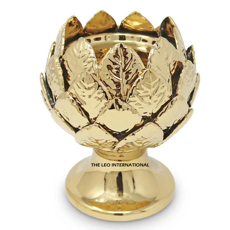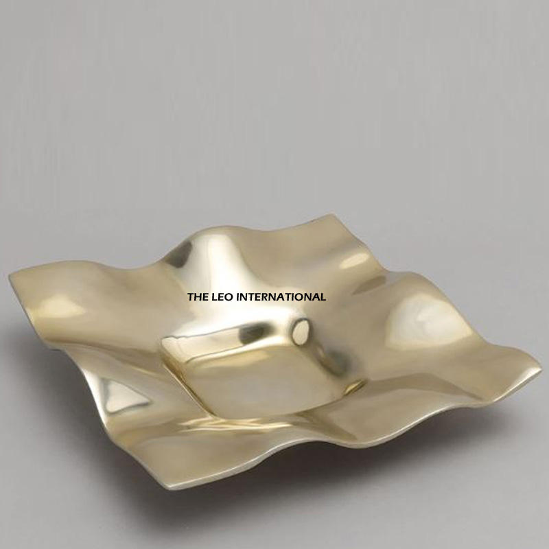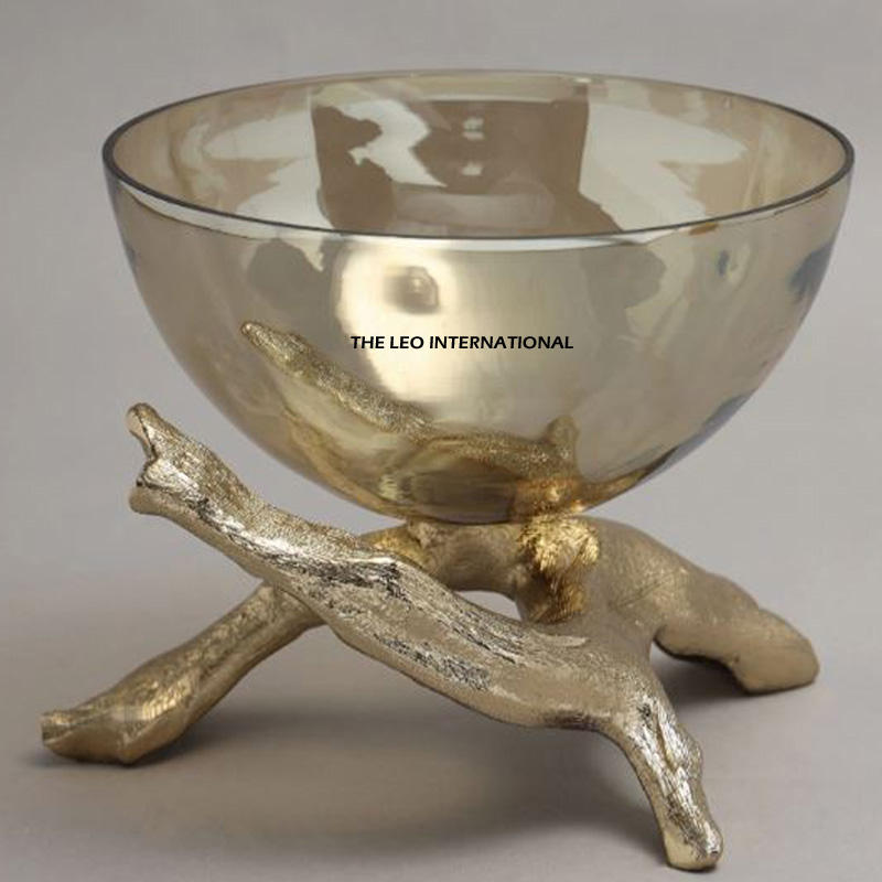 Gold Triple Bowl Server with Palm Leaf Handle for Snacks Dry Fruits and Chocolates Modern Free Decorative Table Centerpiece
