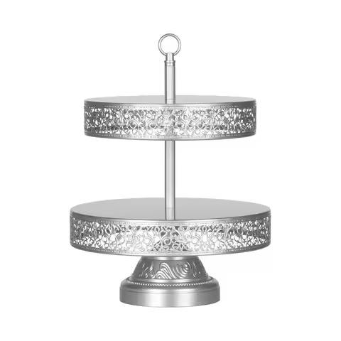 Gold Two Tier Metal Cake Stand Dessert Plate Tray Cupcake Holder Fruit Serving Display Eco-Friendly Handmade Table Decoration