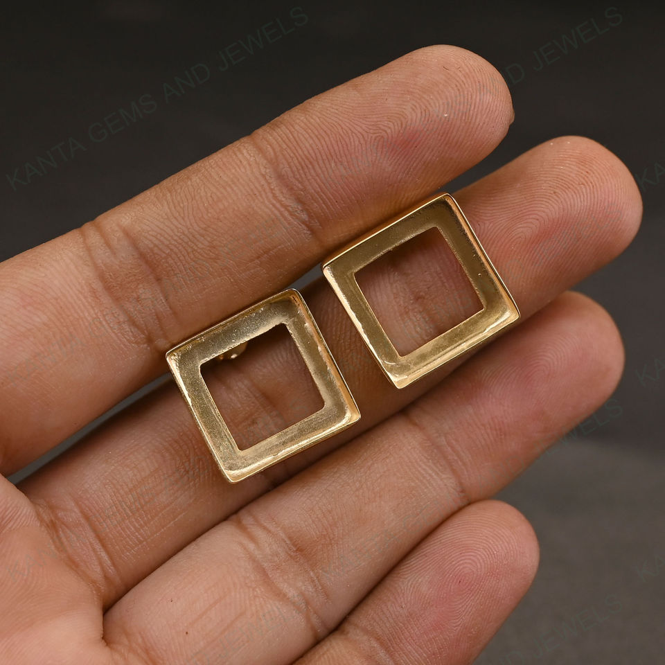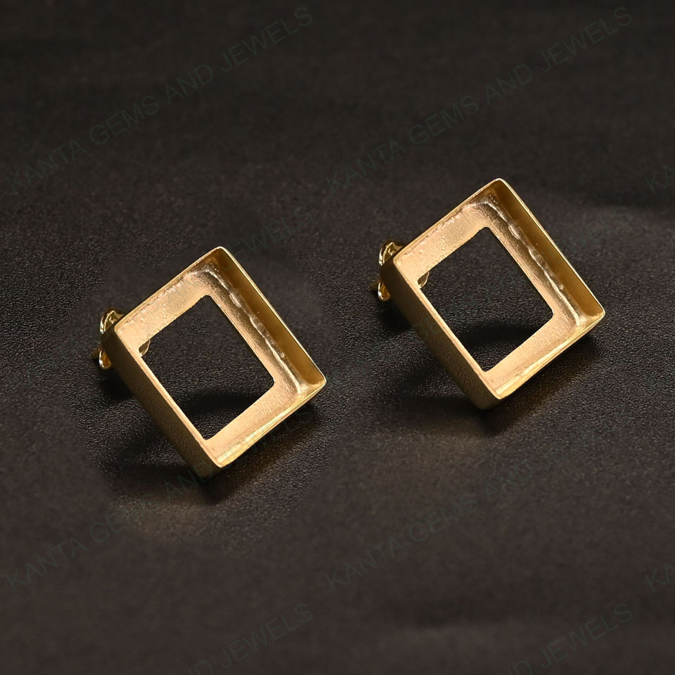 Gold Vermeil 925 Sterling Silver 15mm Blank Bezel Square Shape Stone Setting Earring Studs for Ashes & Resin Work Keepsake Charm