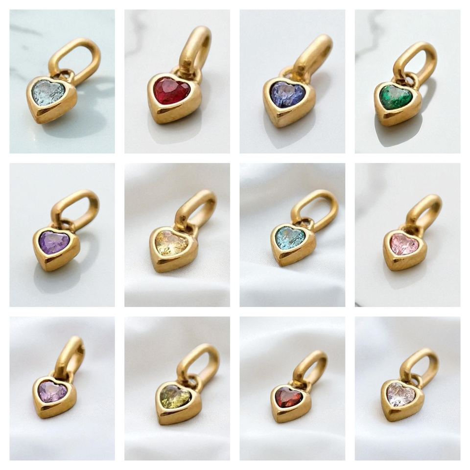 Gold Vermeil Tiny Ruby Quartz Gemstone Heart Charm Pendant - Collet Gemstone Chunky Pendant for Women - Valentin