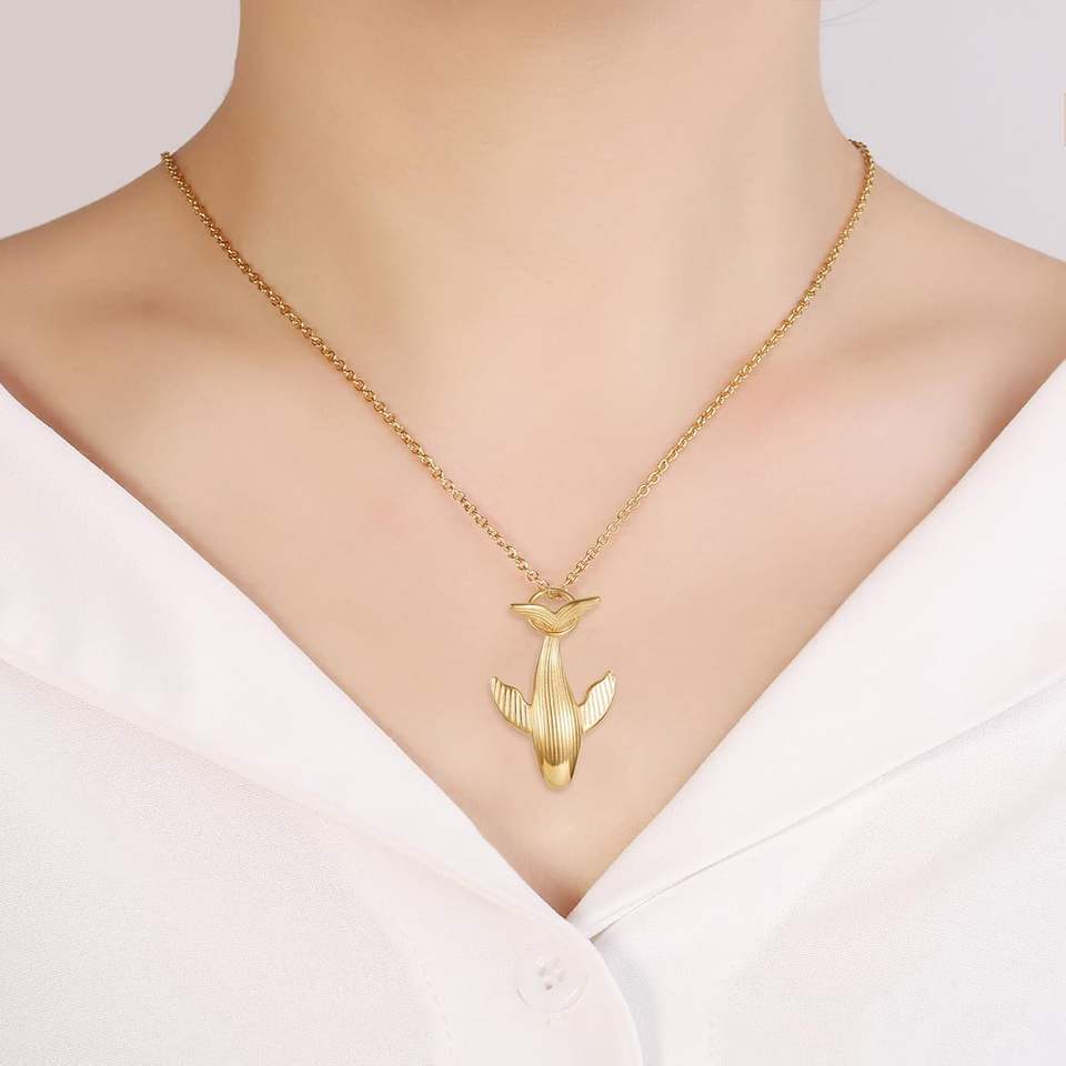 Gold Whale Memorial Jewelry To Hold Cremation Ashes Keepsake Urn Necklace For Women Stainless Steel Funeral Custom Size urn
