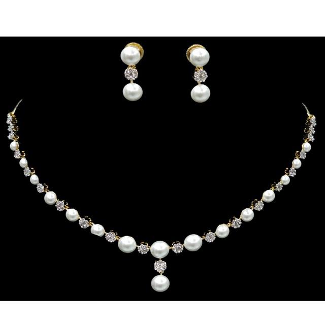Gold White Finish Designer Necklace Set With White Pearl Beautiful Stone Necklace Set For Wedding Party