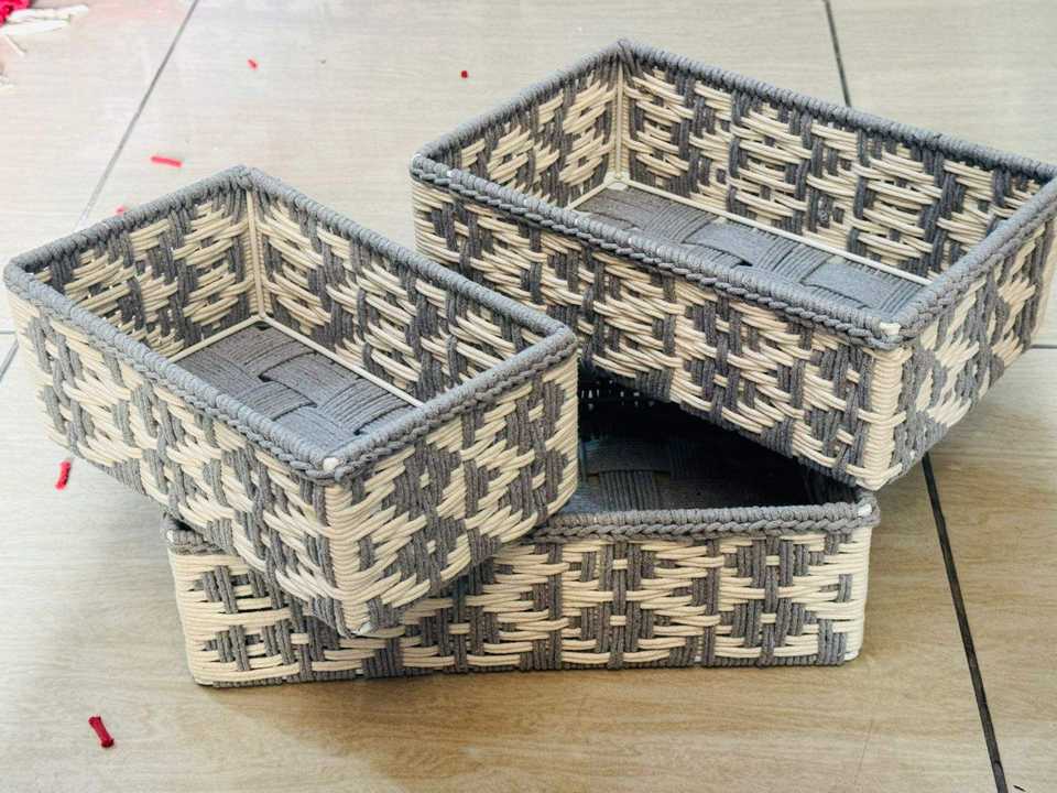 Gold White Macrame Baskets Handmade Custom Size and Color Storage Organizers for Boho Home Decor
