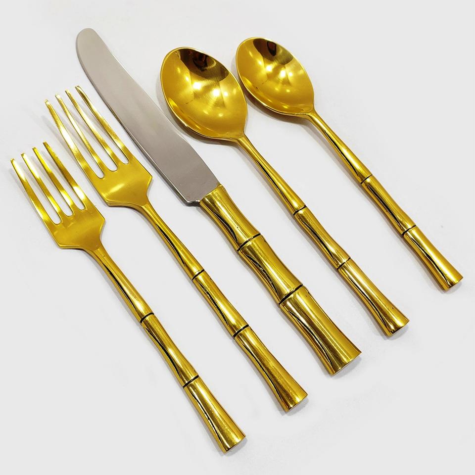 Gold & White Stainless Steel Salad Serving Set HOT SELLING Cutlery Selandia Rattan Salad Server Set of 2 MADE IN INDIAA