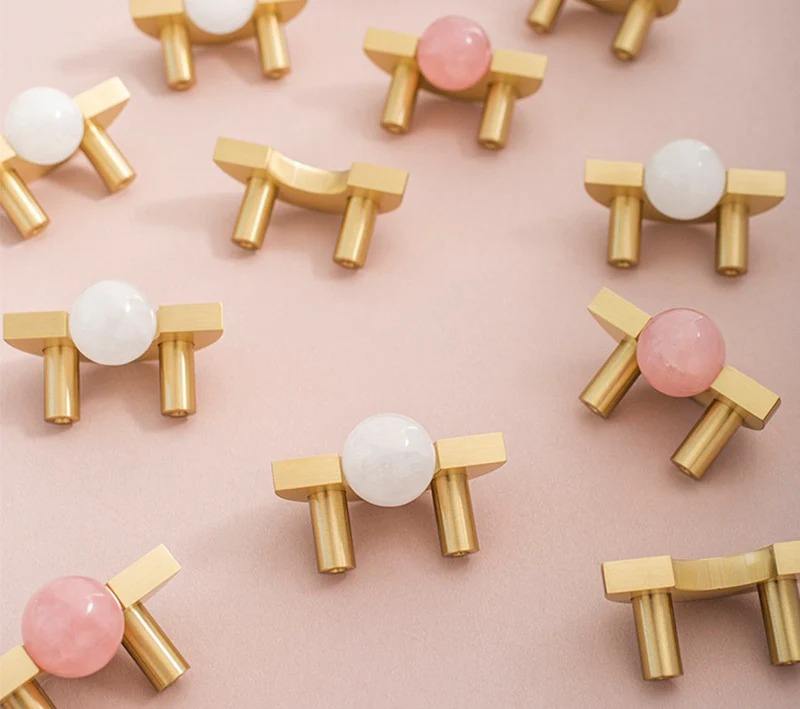 Gold and Pink Knob for Cabinets Drawers and Doors Elegant Decorative Handle for Home Decor Kids Room and Stylish Furniture Use
