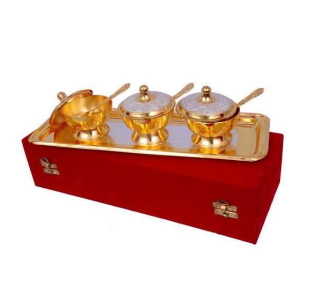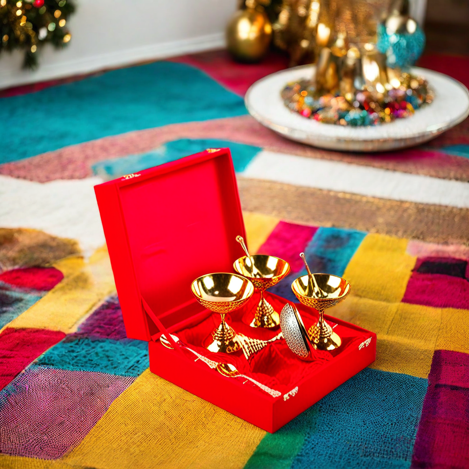 Gold and Silver High Quality Brass Metal Birthday Valentine Christmas Customized Unique Design Ice Cream Bowl Gift Set