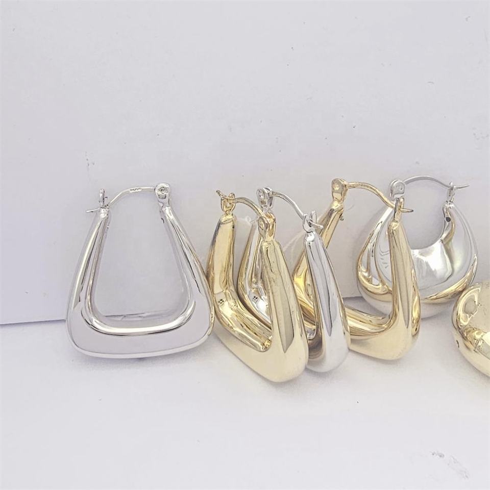 2025 Trendy Silver Punk Style 4-Layer Gold Plated Zircon Hook-shaped Drop Earrings for Women's Anniversary