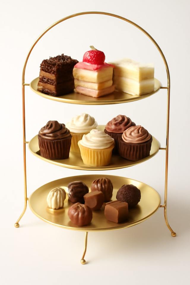 Gold finished metal cake stand is the perfect platform to elevate your cupcakes and captivate your guests