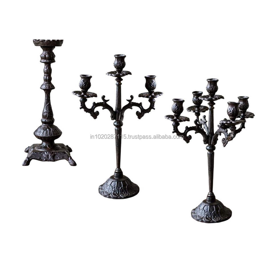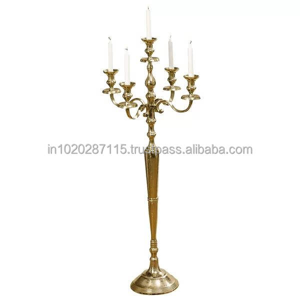 Gold metal candelabra for home interior decor with royal finish and beautiful detailing for elegant candlelight setup