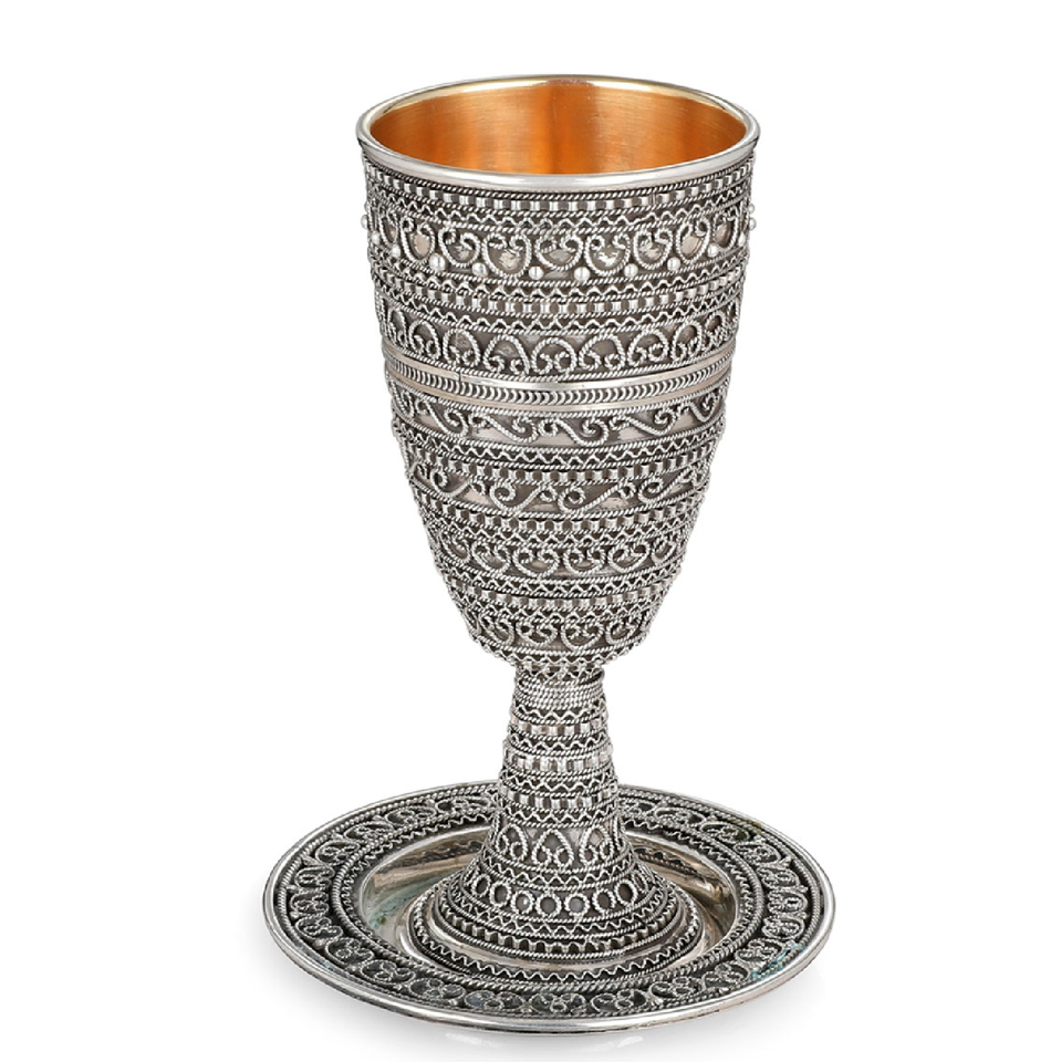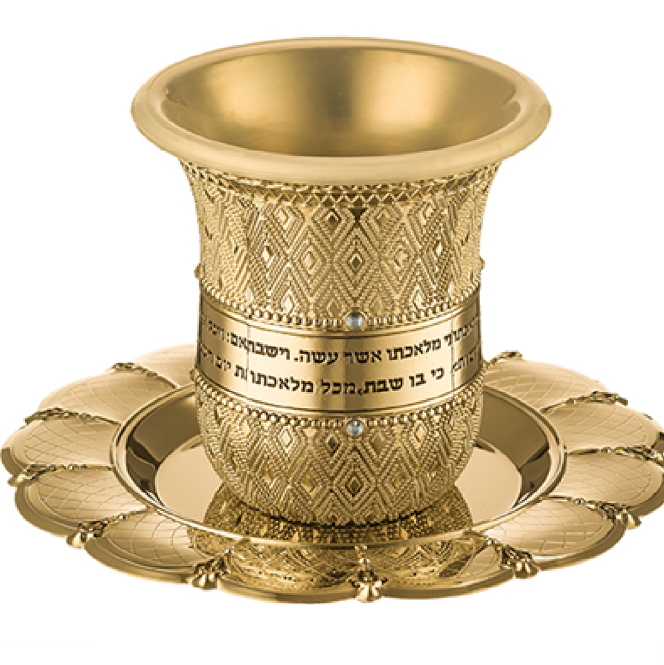 Gold-plated Handcrafted metal Kiddush cups in bulk stock offer a luxurious touch to Jewish celebrations and family gatherings