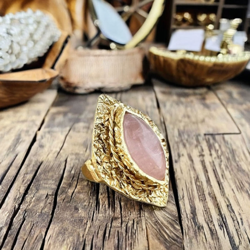 Gold plated Handmade Gemstone Big Leaf Design Adjustable Stylish Cocktail Ring Indian style wholesale prize