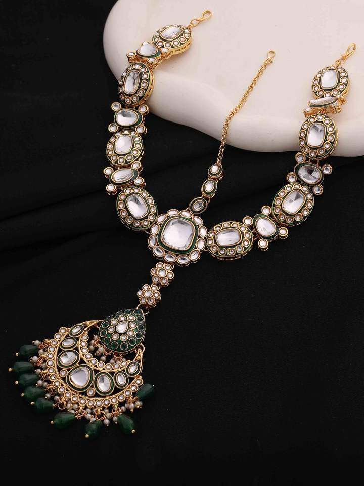 Gold Plated Jodha Akbar Indian Style Kundan & Meena Work Beads Splendor Bridal Choker Set
