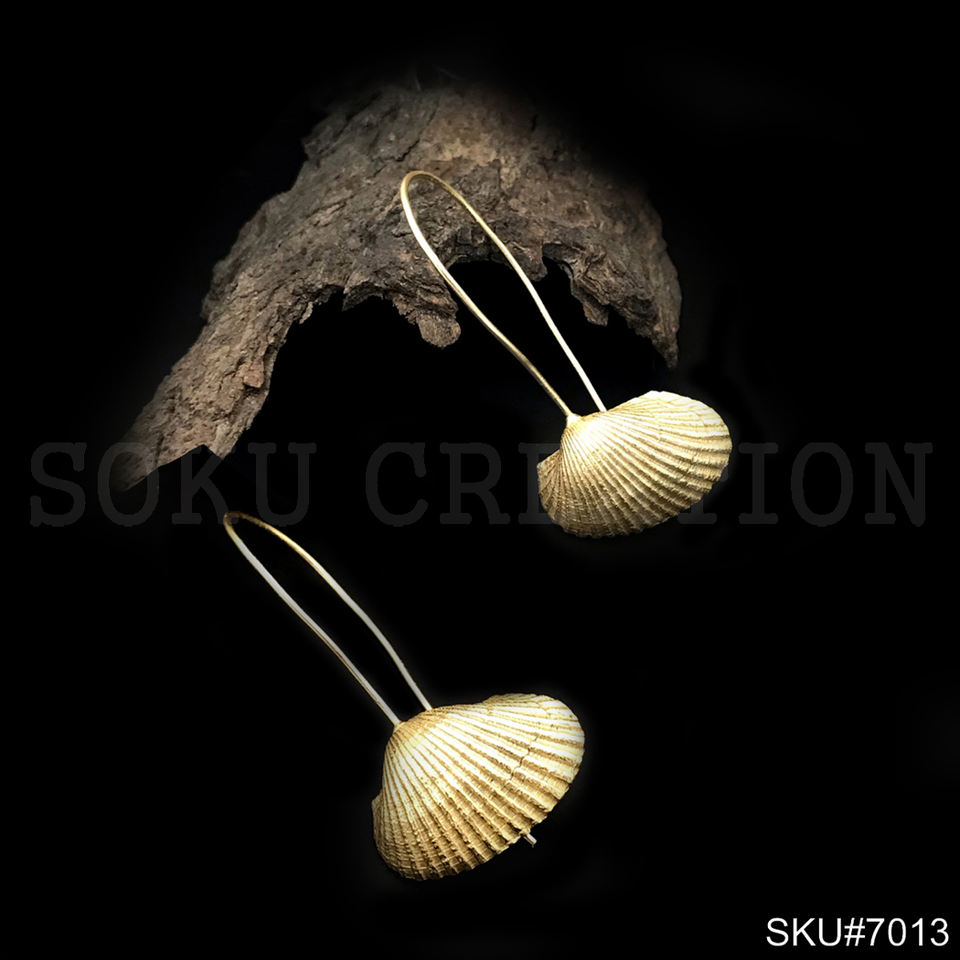 Designer Women's Long Stud Earrings Gold-Plated Fashionable Brass Jewelry Ear Wire Shell Handmade for Stylish Anniversary