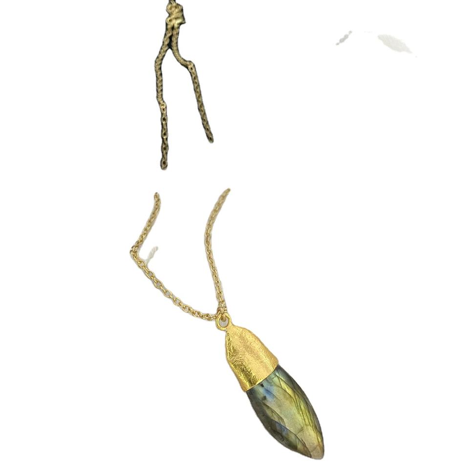 Gold Plated Stylish Labradorite Gemstone Necklace Big Pendant With Chain Necklace Women Fashion Statement Designing Necklace