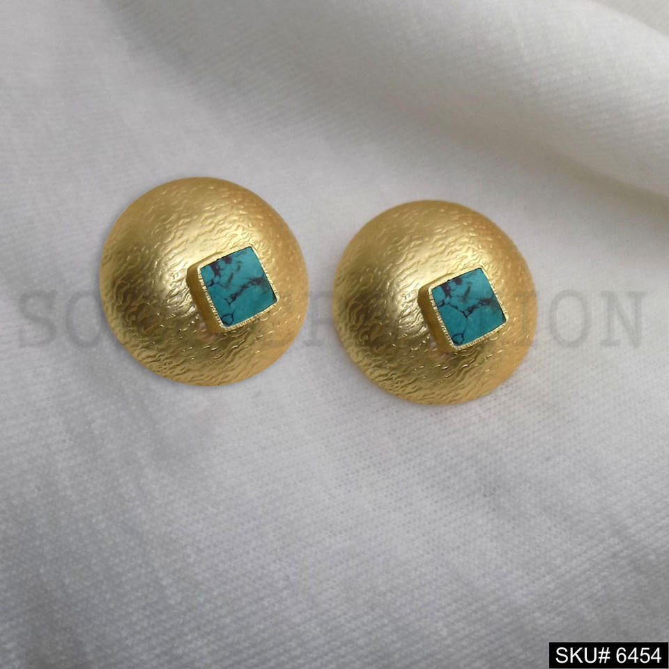Gold plated Turquoise Stone Statement Round Style Stud Earrings SKU6454