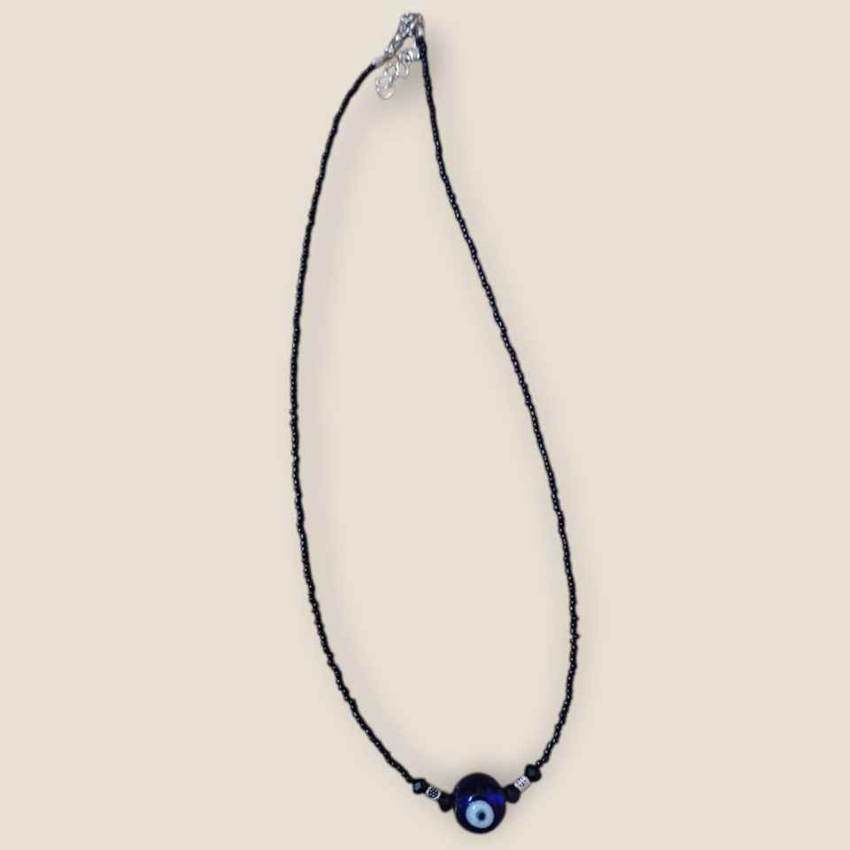 Handmade Black Beaded TURKISH Eye Necklace Adjustable Protection Amulet for Women & Men HIPPIE BOHEMIAN JEWELRY
