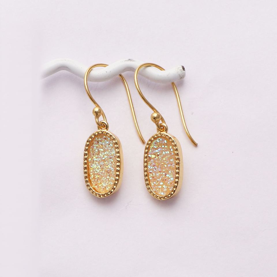 Gold Plated Brass Classic Handmade Oval Hook Earrings with Titanium Coated Druzy Gemstone New Fashion Trend