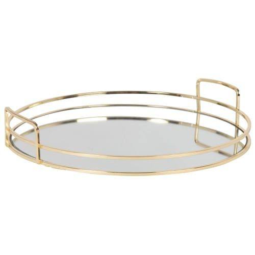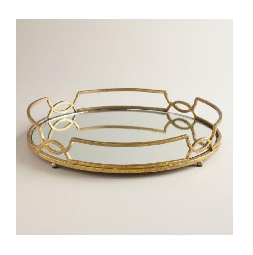 Antique Brass Rectangular Decorative Tray Wedding Decoration Metal Frame Glass Makeup Tray