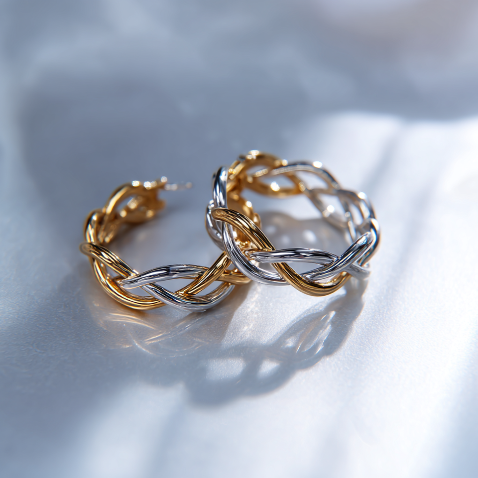 Gold silver plated custom two tone hoop earrings 925 sterling silver bulk