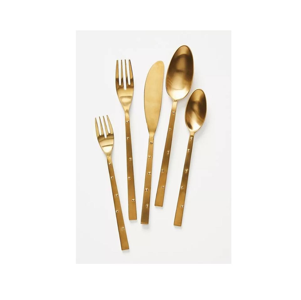 Gold stainless steel cutlery set with detailed craftsmanship and durable construction for fine dining lovers