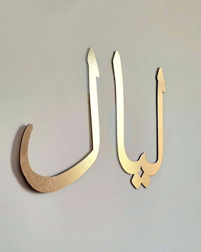 Golden Allah Name Wall Art with Smooth Curved Arabic Letter Form for Minimal Wall Decoration