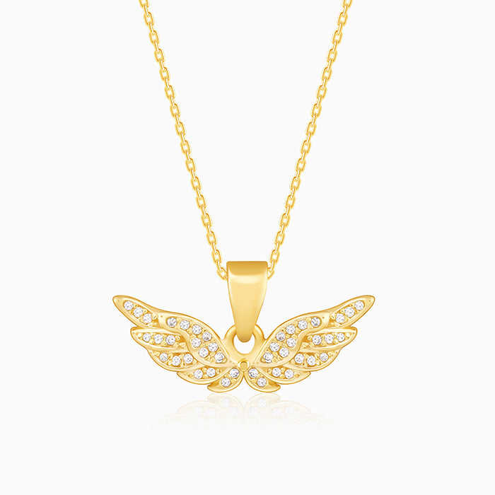 Golden Angel Wings Fine Pendant Necklace with Link Chain