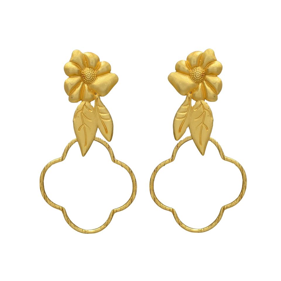 Golden Blossom brass Earrings: A Floral flower Delight for Every Occasion set earrings for women and girl