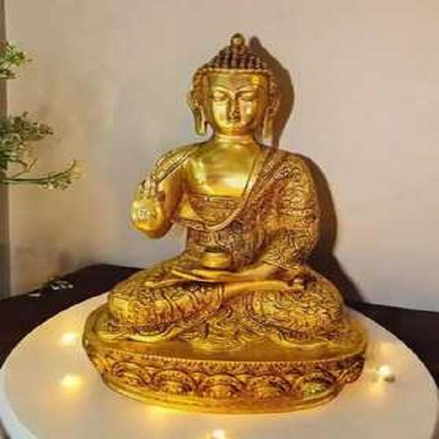 Golden Brass Buddha Statue Handmade for Home Decor Temple Meditation Spaces Promoting Spiritual Peace and Positive Vibes