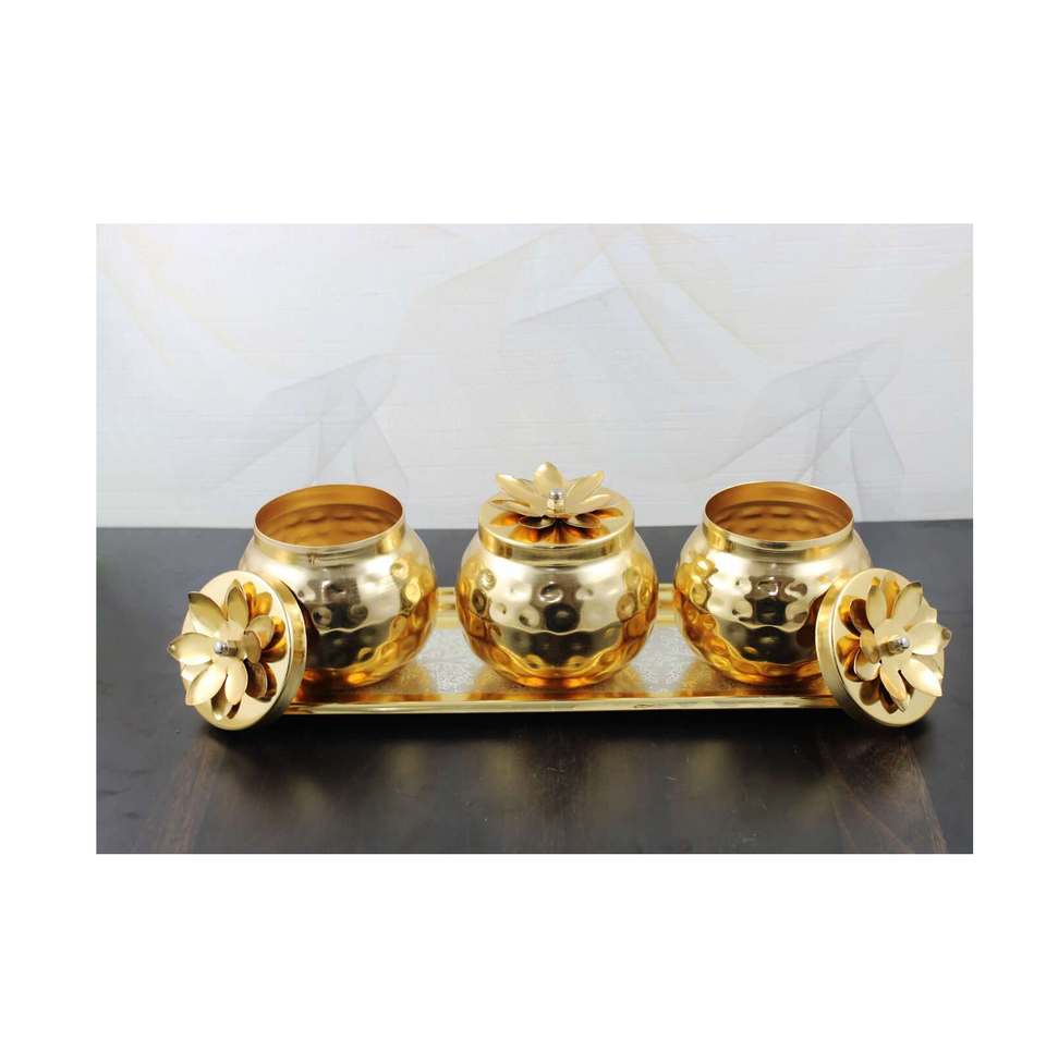Golden Brass Dry Fruit Basket Bowl Hot Selling Fruit Basket for Home Multifunctional Fruit 3 Piece with Tray Gift Items