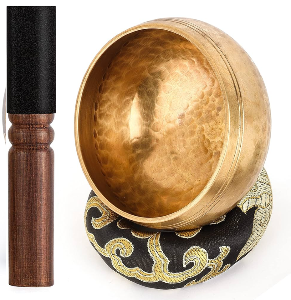 Golden Brass Tibetan Singing Bowl with embossed Om Mani Padme Hum And wooden stick to produce sound available at wholesale price