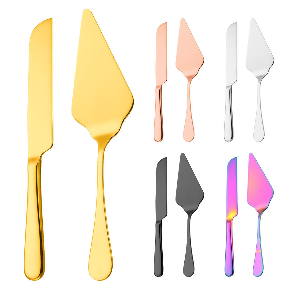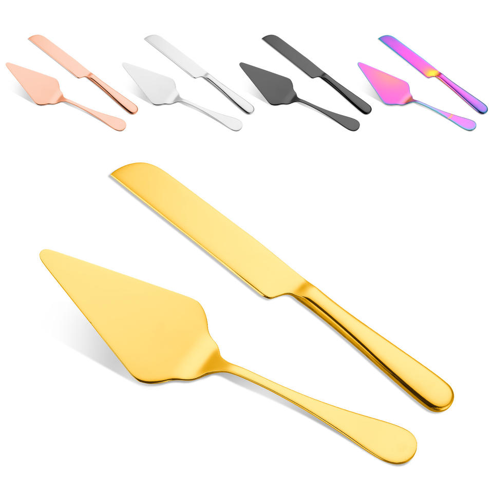 Golden Cake Knife And Spatula Set 2-Piece Stainless Steel Mirror Polished For Wedding Party Baking Tools
