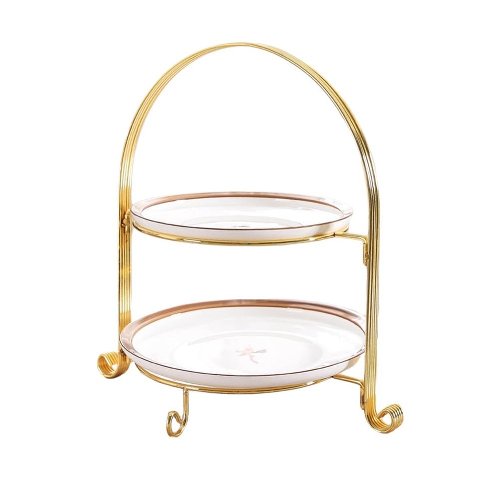 Golden Color Metal 2 Tier Cake Stand for Weddings & Parties Durable Elegant Design for Cakes Cupcakes & Desserts