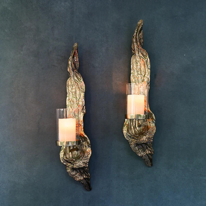 Golden Color Wall Mounted Candle Holder Set of 2 Admirable Designing Metal Candle Holder for Home and Living Room Decoration