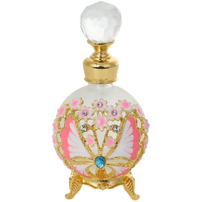 Golden Dubai Retro Fragrance Glass Bottle Metal Perfume Essential Oil Bottle Embroidery Color Empty Bottle