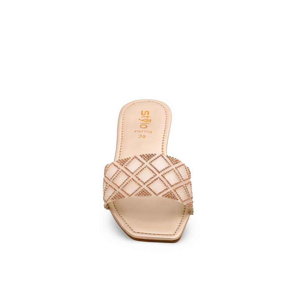 Golden FN7706 Heeled Sandals Elegant Slipper with Intricate Design