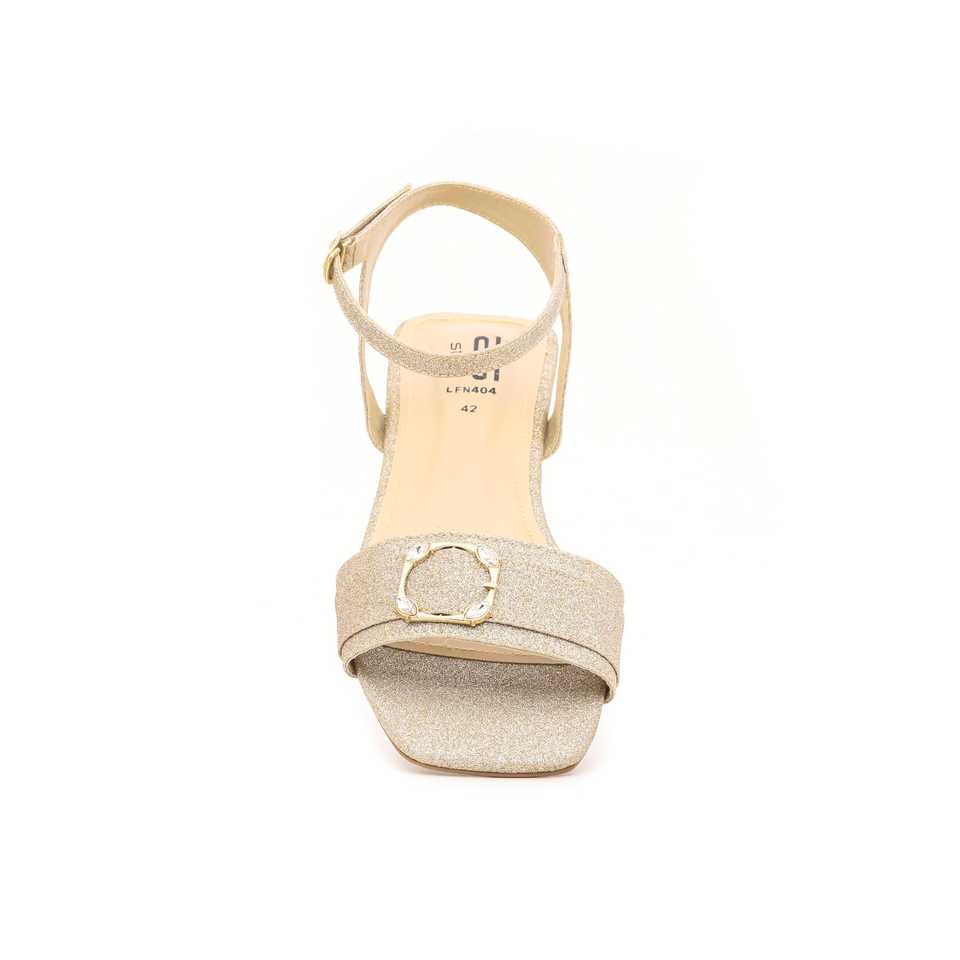 Golden Fancy Satin Heel Sandals LFN404 Comfortable PVC Ankle Strap with Open Toe and Lace-up Closure Stylish Party Heels