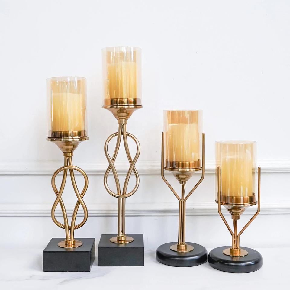 Golden Finished Stand With Glass Candle Holder for Tables Centerpieces Unique Design Candlestick Holder for Wedding Decor