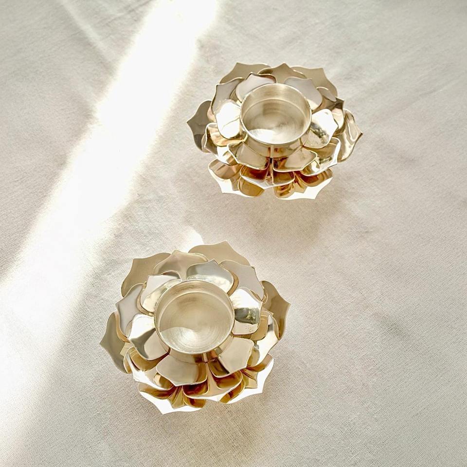 Golden Floral Candle Holder Elegant Table Centerpiece Stylish Decorative Accent Romantic And Festive Home Display